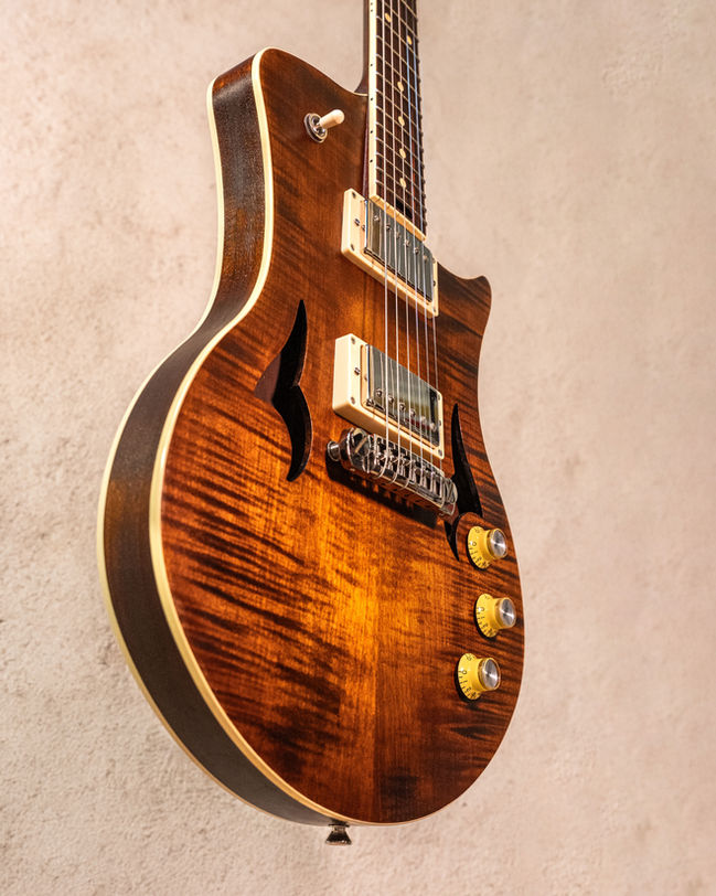 Pour les guitares avec table rapportée ou sculptée (Original, Aerial et Silhouette), le choix de base est l'érable ondé, mais là encore, vous pouvez choisir d'autres essences, et nous pouvons sélectionner ensemble la table de votre choix.